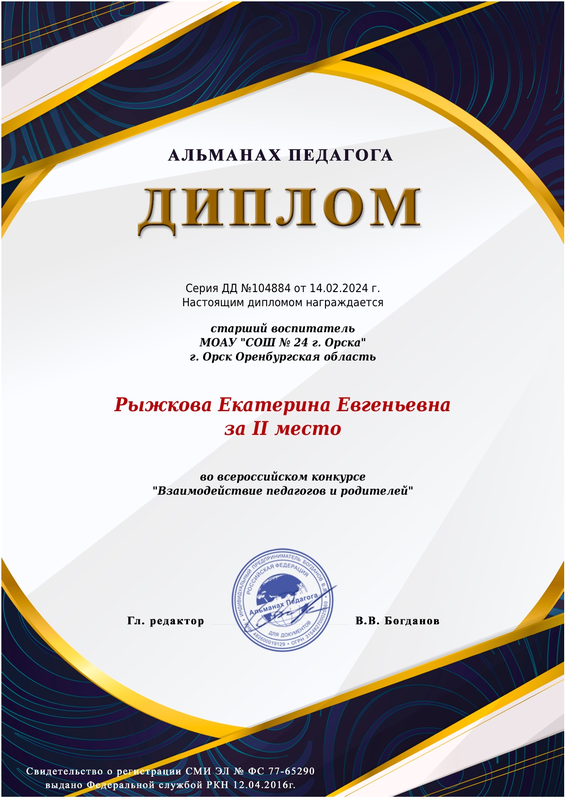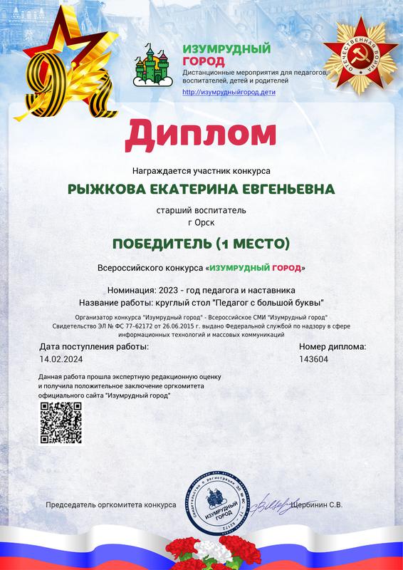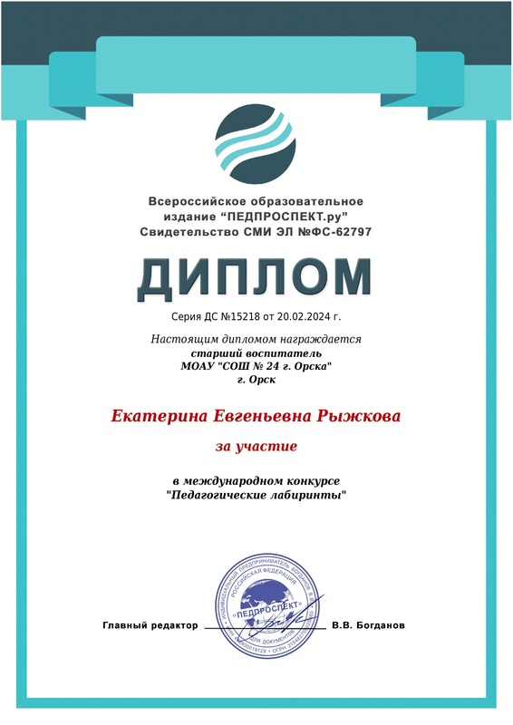 Портфолио старшего воспитателя Рыжковой Екатерины Евгеньевны